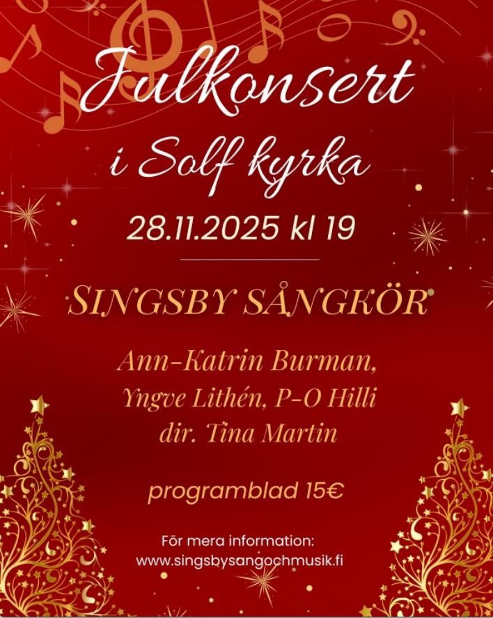 Singsby sångkör har sin julkonsert redan 28.11 kl 19 i Solf kyrka.